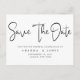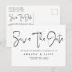 Elegante, einfache Schwarz-Weiß-Verlängerung Save the Date Postkarte. Das Design von ''Save the Date'' in modernem Kalligrafieschrift in tiefschwarzer Farbe auf weißem Hintergrund. Fügen Sie Ihre Nachricht und weitere Details auf der Rückseite hinzu. Alle Rechte vorbehalten ©MSJ_DESIGNS