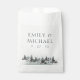 Elemente: Aquarellwald und Bergszenen mit ätherischem Nebel. Hoch entwickelte Serif-Schriftart mit Touchs von elegantem Drehbuch und einem minimalistischen Gefühl. Farben: grün, weiß, sage, blau, staubblau, grau, schief, weiß, nebel. Themen: modern, minimalistisch, Berge, Hochzeit im Freien, Country chic, rustikal, Wald, Outdoorsy, Wald, Wald, Natur, Wandern, felsige Berge, Sierra nevadas, blaue Bergketten, Smokey Berge. Sammlung: Minimalistische Evergreen Mountain Wedding Collection. Art des Produkts: Gefälligkeitsbeutel