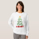 Genießen Sie den Urlaubssgeist im langärmeligen T - Shirt unserer Damen! Dieses reizvolle Design zeichnet sich durch ein festliches Weihnachtsmotiv aus. Das Wort "Merry" ist elegant handschriftlich in einem charmanten Stil angeordnet, um einem Kiefer Weihnachtsbaum zu ähneln, wobei jedes Wort größer wird und sich von oben bis unten in der Kieferngrün vertieft. Unten, '& Bright' in fett roter Fahne fängt ein Retro-70er-Ambiente ein und fügt dem Design eine spielerische Touch hinzu. Ein hellgelber Stern gekrönt den Baum, Set vor einem goldgelben Hintergrund. Dieser T - Shirt mit langen Ärmeln ist der perfekte Ort, um die Jahreszeit zu feiern. Er verbindet rustikalen Charme mit festlichem Flair. Die kreative Gestaltung und die lebhaften Details sorgen dafür, dass es sich besonders gut auszeichnet, um den Urlaub angenehm und gemütlich zu gestalten.