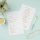 Elegantes Imitat Goldbudget Hochzeitsprogramm (gedruckt auf dünnem Flyer Papier) mit einem einfachen und minimalen Layout. Die links Ausrichtung verleiht diesem klassischen Hochzeitsprogramm ein modernes Element. Ein minimales Design, das großartig ist, ob Sie eine lässige oder eine traditionelle / formelle Hochzeit haben.