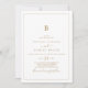 Diese minimalistische Gold monogramm Hochzeitseinladung ist perfekt für eine einfache Hochzeit. Das moderne romantische Design besticht durch klassische Goldtypografie und Weiß, gepaart mit einer rustikalen und eleganten Kalligraphie mit Vintagem handgeschriebenem Stil. Anpassbar in jeder Farbe. Behalt das Design einfach und elegant, wie es ist, oder personalisiere es durch Hinzufügen von eigenen Grafiken und Kunstwerken. Personalisieren Sie die Karte mit Ihrem letzten Monogramm.