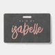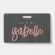 Ein moderner minimalistischer, staubiger Pinselskriptname Makeup artist Abzeichen, auf einem gereizten, karkohlegrauen Hintergrund. Edgy moderner Stil. Ideal für Messen und Kongresse.