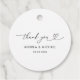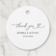 Mit diesen eleganten Geschenketiketten, mit zarter Herzschrift und bearbeitbarem Text, können Sie sich bei Ihrer Hochzeit bei Ihren Gästen bedanken. Fügen Sie einfach Ihre eigenen Daten hinzu, indem Sie auf die Option "Personalisieren" klicken.