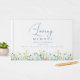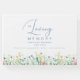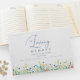 Minimalistische "In Loving Memory" Feier des Lebens, weiße Beerdigung Gästebuch, eleganter, schöner handgeschriebener Schriftart und Wildblumen.