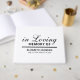 Dieses minimalistische Begräbnisgastronomie-Gästebuch ist eine einfache und elegante Art, Erinnerungen und Beileidsbekundungen von denen zu sammeln, die Ihren Liebsten lieben. Das klassische "In Loving Memory Of"-Design bietet den Gästen einen gediegenen und schönen Rahmen, um ihre Gedanken zu schreiben und ihre Erinnerungen zu teilen. Es ist vollständig anpassbar, sodass Sie es mit Ihren eigenen Fotos, Texten und Farben personalisieren können.