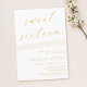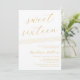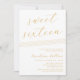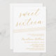 Diese moderne, minimalistische, süße 16-Einladung besticht durch einen trendigen Kalligraphie-Script-Schriftart und -Zeilen. Das klassische Gold-Weiß-Design eignet sich perfekt für eine stilvolle 16 . Geburtstag Geburtstagsfeier. NICHT AKTUELLE GOLDFOLIE
