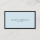 Ein elegantes und raffiniertes Design steigert Ihren Namen oder Firmennamen durch minimales und modernes Design. Der schwarze, dünne Rahmen ist auf einem blauen Hintergrund geerdet und verleiht diesem klassischen Visitenkartendesign-Template ein ruhiges Gefühl. © 1201AM CREATIVE