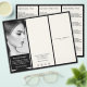 Ein elegantes und raffiniertes Design hebt Ihre Marke auf dieser beruflichen dreiseitigen Broschüre auf. Ihr Name oder Ihr Firmenname ist auf der Vorderseite minimal gestylt, während die Elfenbeinfarben und die Schwarz-Farbpalette das allgemeine Design klassisch und sauber behalte. Aktualisieren Sie den personalisierbaren Text auf Ihre Marke und personalisieren Sie die Details und Fotos in der Broschüre für Ihren eigenen Gebrauch. Ein großartiges Marketing, das Sie potenziellen Kunden überreichen können, um Ihr Unternehmen schnell und unkompliziert einzuführen. Ideal für Messen, Salons, Schmuckmarken, kleine Boutiquen, Luxusartikel, Restaurants und vieles mehr. Bitte wenden Sie sich an den Designer, um Hilfe bei der Erstellung spezieller Schrift- oder Layoutvarianten zu erhalten. Kunst und Design © 1201AM Design Studio | www.1201am.com
