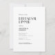 Dieses minimalistische, moderne Art Deko Probe Dinner Einladung präsentiert sowohl eine elegante, schwarze Krawatte formell, als auch ein lässiges, einfaches Design für eine traditionelle oder rustikale Ehefeier. Das schlichte, neutrale Schwarz-Weiß-Layout mit einzigartiger, klassischer Typografie spricht für minimales Boho oder klassisches Retro-Design und ist somit perfekt für jedes Event-Thema geeignet.