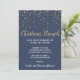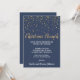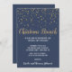 Diese minimalistische, moderne, blaue Konfetti-Weihnachtsbrunch-Einladung ist perfekt für ein klassisches Weihnachts- oder Feiertagsfest. Das Design besticht durch festliche Goldkonfetti mit eleganter Gold- und Weißkalligraphie auf blauem Hintergrund.