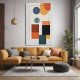 Dieses Minimalistische Abstrakte geometrische Kunstposter zeichnet sich durch eine einzigartige Anordnung von fett gestrichenen Farbblöcken in warmen Farbtönen in Orange, Rot, aquamarin und Schwarz aus. Dieses Kunstwerk, das vom Bauhaus und den modernen Designprinzipien der Mitte des Jahrhunderts beeinflusst wird, ist die perfekte Wahl für Liebhaber von Minimalismus und geometrischer Abstraktion. Die Verwendung von sauberen Linien und soliden Formen verleiht jedem Raum ein Gefühl von Struktur und Eleganz und macht ihn zu einer idealen Ergänzung zu modernen Wohnzimmern, Büros oder Schlafzimmern. Dieses Kunstwerk verbindet technologische Innovation mit künstlerischer Kreativität, was zu einem unverwechselbaren Stück führt, das sich durch seine herausragende Qualität auszeichnet. Dieses minimalistisch abstrakte Print eignet sich ideal für Gäste, die eine moderne und stilvolle Dekoration suchen. Es eignet sich sowohl für die Hauswärme, Geburtstage oder als ein einzigartiges Geschenk für Kunstliebhaber. Das gepflegte, geometrische Design verleiht jedem Raum eine angenehme Note und verleiht gleichzeitig eine Touch moderner Eleganz.