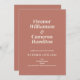 Mit dieser eleganten und minimalistischen Hochzeitseinladung präsentieren wir Ihnen einen angesagten typografischen Stil auf einem warmen Terracotta-Tonhintergrund. Diese moderne Einladung eignet sich perfekt für Paare, die saubere Linien und erdige Farbtöne zu schätzen wissen. Sie schafft ein elegantes und zugleich einladendes Ambiente. Ob Sie eine rustikal-schicke Feier planen oder ein zeitgenössisches Boho-Ereignis planen, dieses Design erweckt Ihren einzigartigen Stil mühelos mit zeitloser Eleganz.