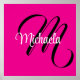Minimalistische moderne Monogramm Anfangsname Schwarz-weiß. Personalisierbarer individuelle Name mit einem kursiven Initial hinter einer heißen rosa Farbe.