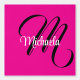 Minimalistische moderne Monogramm Anfangsname Schwarz-weiß. Personalisierbarer individuelle Name mit einem kursiven Initial hinter einer heißen rosa Farbe.