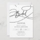 Laden Sie Ihre Lieben in Ihr Brautparty mit dieser minimalistisch-modernen Schwarz-Weiß-Einladung ein, die eine extravagante Skriptkalligrafie "Bridal" enthält. Diese Einladung ist perfekt, wenn Sie Einfachheit und Eleganz wünschen.