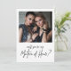 Einfache, elegante und stilvolle Schwarz-Weiß-Matron der Ehrengarantie Angebot Einladung. Design bietet Single Foto und ''wirst du mein Ehrengast'' in trendiger handgeschriebener Schrift.