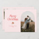 Minimale und saubere Weihnachtsfotokarte mit einem rosa Bogen-Rahmen mit Typografie-Text, der "fröhliche Weihnachten" mit einer einfachen Illustration von roten Beeren sagt.
