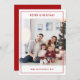 Feiern Sie die Weihnachtszeit mit dieser charmanten, minimalistischen Weihnachtskarte in Rot und Weiß. Mit elegantem und elegantem Design präsentiert es Ihr familiäres Foto wunderschön, betont durch seine schlichte und dennoch raffinierte Typografie. Die moderne, stilvolle rote Grenze fügt eine gemütliche festliche Touch hinzu, die Ihre Botschaft von Liebe und Freude unterstreicht. Diese Karte ist perfekt für den Austausch von warmen Wünschen und verbindet den modernen Weihnachtsgeist mit zeitloser Eleganz und ist somit ideal für Freunde und Familie.