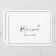 Dieses minimalistische vorbehaltene Schild ist perfekt für eine einfache Hochzeit. Die Karte ist zweiseitig (beidseitig gedruckt). Das moderne romantische Design besticht durch klassische schwarz-weiße Typografie gepaart mit einer rustikalen und eleganten Kalligraphie mit Vintagem handgeschriebenem Stil. Anpassbar in jeder Farbe. Behalt das Design einfach und elegant, wie es ist, oder personalisiere es durch Hinzufügen von eigenen Grafiken und Kunstwerken. Benutzen Sie diese Karten, um Stühle oder Tische bei Ihrer Hochzeitsfeier, Empfang oder jeder Veranstaltung zu reservieren.