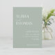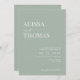 Moderne Hochzeitseinladung mit minimalistischem Typografie-Design in schlauer grüner Farbe. Einfach mit all Ihren Informationen für individuelle Hochzeitseinladungen personalisieren,