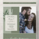 Elegante, moderne, minimalistische, einfache, zeitgenössische Weise grüne Hochzeit alles in einem, mit riesigen Monogramm-Initialen, Aquarell und zwei Bildern des Paares. Fügen Sie Ihre Fotos, Ihre Hochzeitsdetails und uAwg.