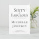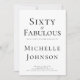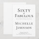 Eine schöne, moderne minimalistische Einladung zum 60. Geburtstag, die Sie für eine unglaubliche sechzigste Geburtstagsfeier personalisieren können. Die Worte "Sechzig und Fabulous" werden mit beliebter Typografie gesetzt. Ändern Sie den Namen und die Party-Details für eine wirklich einzigartige Einladung.