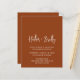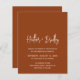 Moderne Budget Hochzeitseinladung mit einem einfachen Design mit Ihren Namen in einer eleganten Skripttypografie und Ihre Veranstaltungsdetails in einem minimalistischen Sans Serif Schriftart. Alle Gestaltungselemente sind in Weiß über einem boho terracotta / Kupfer Hintergrund. Diese schicke Hochzeitseinladung funktioniert gut für eine Herbst/Herbst Hochzeit.
