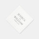 Mit diesen eleganten Servietten im minimalistischen Design stärken Sie Ihre Tischatmosphäre. Das gepflegte und schlichte Design besticht durch einen delikaten Schriftart und viel Weiß. Die Einrichtung wirkt gepflegt und zeitlos und beeindruckt Ihre Gäste. Diese Servietten können mit Ihren Namen und dem Datum Ihrer Hochzeit angepasst werden, sodass sie eine unvergessliche und praktische Ergänzung Ihres Empfangs sind. Alle Textstile, Farben, Größen können an Ihre Bedürfnisse angepasst werden. Wenn Sie Hilfe oder passende Artikel benötigen, zögern Sie bitte nicht, mich zu kontaktieren.