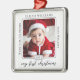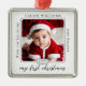 Einfaches und minimalistisches runder Quadrat-Foto-Design "meine ersten Weihnachten" mit Name und Geburtsstatistik. Composite Design von Holiday Hearts Designs.