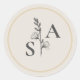 Minimalistische Beige-Monogramm-Wildblume Runder Aufkleber