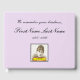 Dieses elegante Beerdigung- oder Gedenkbuch enthält die Meldung "Wir erinnern uns an Ihre Freundlichkeit" und den personalisierten Namen und das Geburtsdatum/das Todesdatum des weitergegebenen Individuums. Es verfügt auch über ein personalisiertes Foto. Es könnte genutzt werden, um Beileidsbekundungen für die Verwandten und Freunde von jemandem, der vor kurzem verstorben ist, aufzuzeichnen.