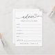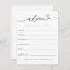 Lassen Sie Ihre Duschgäste diese bezaubernden Ratschläge ausfüllen, die Sie an Ihrem Brautparty oder in der Dusche von Paaren erhalten. Personalisieren Sie die mit dem Brautennamen und dem Duschdatum. Mit einem minimalistischen Design mit Kalligraphie-Skript, um die Minimalistische Brautparty Game Collection auf dem Adore Paper Co. Zazzle-Shop gefunden.