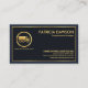 Oben steht das goldene Logo, gefolgt von Ihrem angesehenen Namen, den Kontaktdaten und einer Slogan-Option, um Ihre Dienste bekannt zu machen.