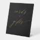 Für Ihre Hochzeit bietet dieses moderne, minimalistische Schwarz-Gold-Karten und Geschenkschild eine handgeschriebene elegante Imitate Goldskripttypografie, die "Karten + Geschenke" auf einem einfachen schwarzen Hintergrund ausliest. Entworfen von Susan Coffey.