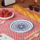 Minimalistische Marineblau und weiße Kreise Streifen Muster Party Papier Teller.