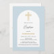 Minimalistische Blauer und Goldkreuztaufen Einladung