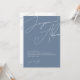 Minimalistische Blue Script Typografie Einladungen Hochzeit. Erleben Sie Ihre Hochzeitsankündigung mit unserer modernen Schrift Typografie Einladung, eine zeitlose Wahl für Ihren besonderen Tag. Diese Einladung verbindet klassische und elegante Designelemente nahtlos mit einer simplizistischen Ästhetik von Weiß und Blau und schafft einen auffallenden Kontrast, der einen formalen und ausgeklügelten Ton Set. Die Einfachheit des blauen Farbschemas und die Eleganz der weißen Typografie machen diese Einladung zu einer perfekten Wahl für Paare, die eine einfache, aber wirkungsvolle Aussage suchen. Wählen Sie diese Einladung, um Ihre Liebe in einer klassischen und modernen Fusion lassen