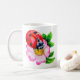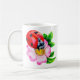 Minimalistische botanische Wasserfarbe Ladybug Blume Tasse. Diese stilvolle Tasse zeichnet sich durch ein hübsches ladybug-Blumendesign in Rosa, Rot und Grün aus.