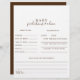 Diese minimalistisch braunen Babyprognosen und Ratschläge sind perfekt für eine einfache Babydusche. Das Design besticht durch einen wunderschönen Kalligraphie-Schriftart in weißem Hintergrund.