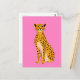 Ein minimalistisches Design einer Geparden auf einem hellrosa Hintergrund.
