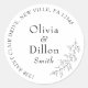 Minimalistische elegante Blatt Zweig Schwarz Drehbuch Hochzeit klassische Rundaufkleber. Passen Sie diesen Aufkleber mit Ihrem Namen und Text an.