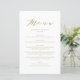 Individuell anpassbare Script-Menükarte mit elegantem Skript, einfacher Typografie und Streifen Muster. Diese Menükarte ist perfekt für jedes Hochzeitsthema und jede Jahreszeit. Personalisieren Sie diese, indem Sie Namen, Datum und Menüdetails hinzufügen.