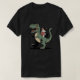 Minimalistisches Dreifarbenkatzen-Lese-Buch-Reiten-T-Rex-Dinosaurier-T-Shirt