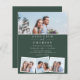 Dieses Budget für Hochzeitseinladung enthält ein Header-Foto mit einer 3-Foto-Collage unten mit einem weißen Rand um sie herum. Ihre Hochzeitsdetails werden in eleganter minimalistischer Typografie vor einem eleganten dunkelgrünen Hintergrund dargestellt.