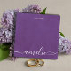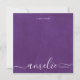 Diese moderne Notenkarte "a note from", enthält Ihren Vornamen in einer weißen handgeschriebenen Schrift-Kalligraphie auf einem violett bedrängten Hintergrund, mit Ihrem Nachnamen in einer modernen serifenlosen Schrift, die in Ihrem Skripttyp verschachtelt ist. Die Rückseite der Notizkarte ist weiß für Ihre Nachricht. Texturierte Wirkung.
