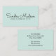Berufliche Visitenkarten mit weißer Unterschrift und einem schwarzen, puristischen Stil auf Minzgrün. Nur eine Touch von Launen in der Schrift. Moderne, Berufliche, kreative und elegante Unterschrift. Geeignet für viele Berufe. Real Anwesen Agent, Wirtschaftsprüfer, Makler, Broker, Anwälte, Anwälte, Ärzte, Corporate Professionals, Stylist, Architekten, Make-up, Haare, Designer, Lehrer.