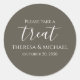 Ein schlichtes Dankeschön an Sie bedanken sich bei der Vorlage des Aufklebers, die minimalistische, einfache Dankeschön-Vorlage, das Design des Aufklebers, der moderne klassische Empfang, die Namen des Brautbräutigams, das Bar des Süßwarenbüfetts, die Etiketten erstellen, die Leckerei des Hundes nehmen, das kreative, elegante, kreative und stilvolle Labels der personalisierten Gastgeschenk Hochzeit anpassen