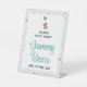 Begrüßen Sie die Feier mit unserem zauberhaften gummy Bären Podestschild. Der Bär mit Ballons-Ikone an der Spitze fügt dem Schild eine charmante Touch hinzu. Der große grüne Kalligraphietext hebt sich ab und lädt die Gäste zum Vergnügen beim Raten ein. Das umliegende Polka Dot-Muster verleiht dem Gesamtbild eine spielerische und fröhliche Touch. Passen Sie die Farben an, um Ihr Babyduschthema perfekt zu ergänzen. Ermutigen Sie Ihren Gast, die Anzahl der Muschelbären im Glas zu schätzen und es zu einer aufregenden und einladenden Aktivität zu machen. Pair dieses Schild mit unserem koordinierenden Gummibären-Krug-Label-Aufkleber für ein vollkommenes und zusammenhängendes Baby-Duscherlebnis.