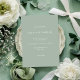 Minimalistische moderne Hochzeitseinladung mit schlauer, grüner Textgestaltung in schlichtem Stil.