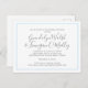 Hochzeitseinladung Postkarte mit minimalistischem Design. Weiß mit grauem Text in modernem handgeschriebenem Skript und gedrucktem Text. Die Karte ist in einem dünnen, blauen Rahmen dargestellt. Ändern Sie einfach die Farbe der Randlinie, indem Sie den Bereich "Weiter anpassen" verwenden. Die Namen der Braut und des Bräutigams sind in großer Schrift. Dies ist eine einfache und erschwingliche Möglichkeit, um die Gäste zu einer Hochzeitswebsite zu leiten, um Pläne zu sehen, Fotos zu sehen und online zu antworten. Zeilen werden auf der Rückseite für Adressen bereitgestellt.